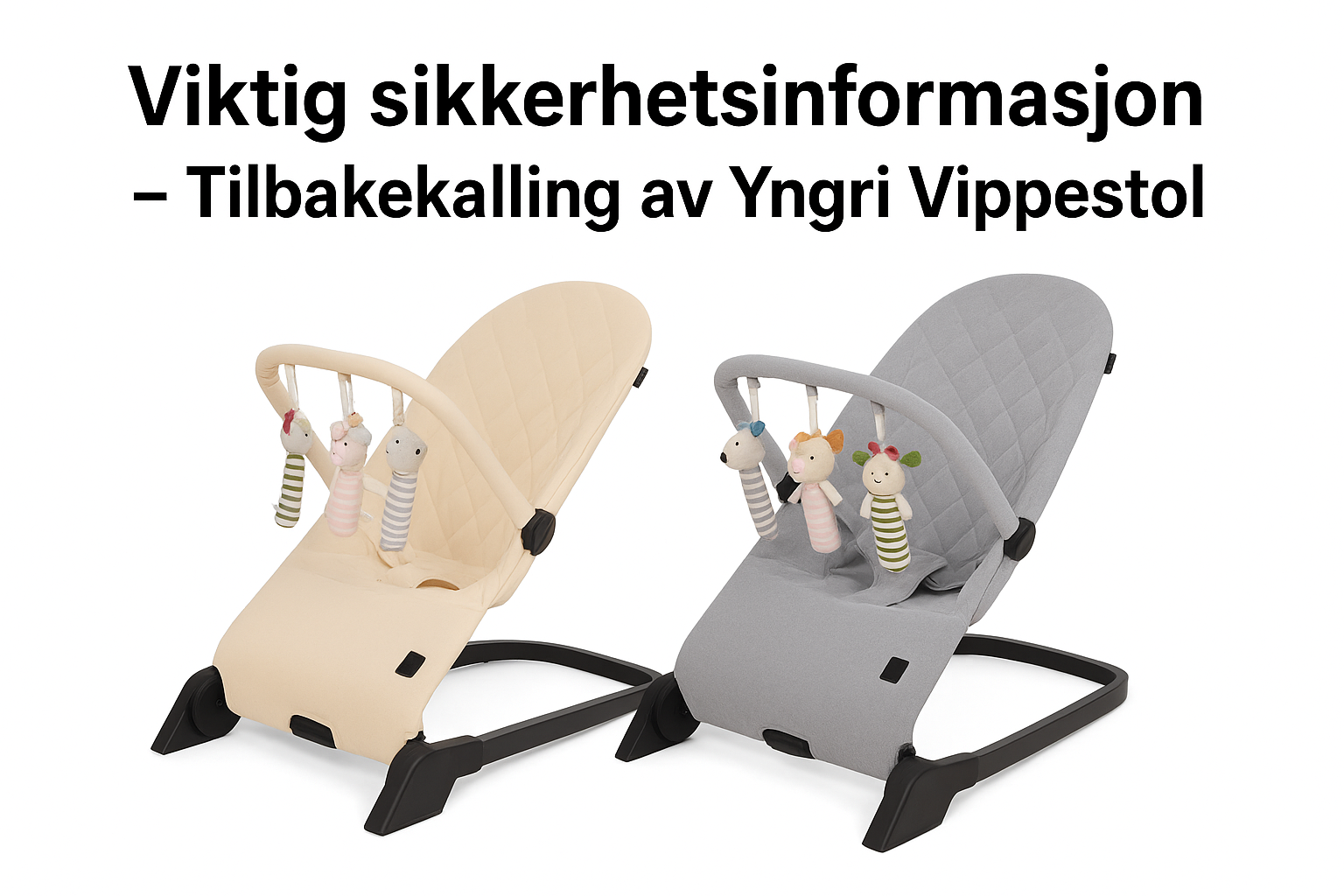 Viktig sikkerhetsinformasjon – Tilbakekalling av Yngri Vippestol Barnas Hus Norge AS tilbakekaller produktet Yngri Vippestol, art.nr. 11041254, serie/PO nr. 404050118. Vi har mottatt meldinger ...
