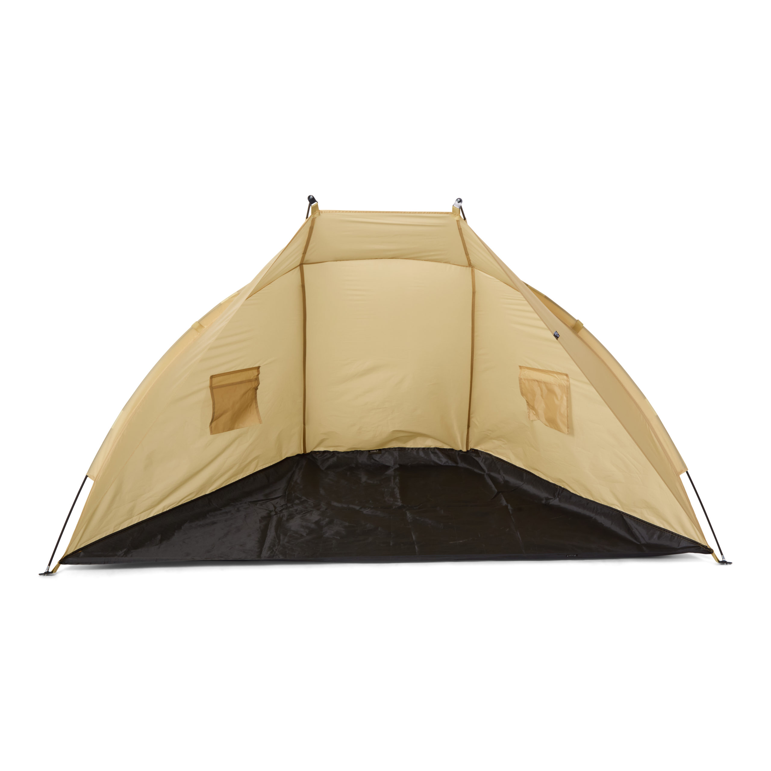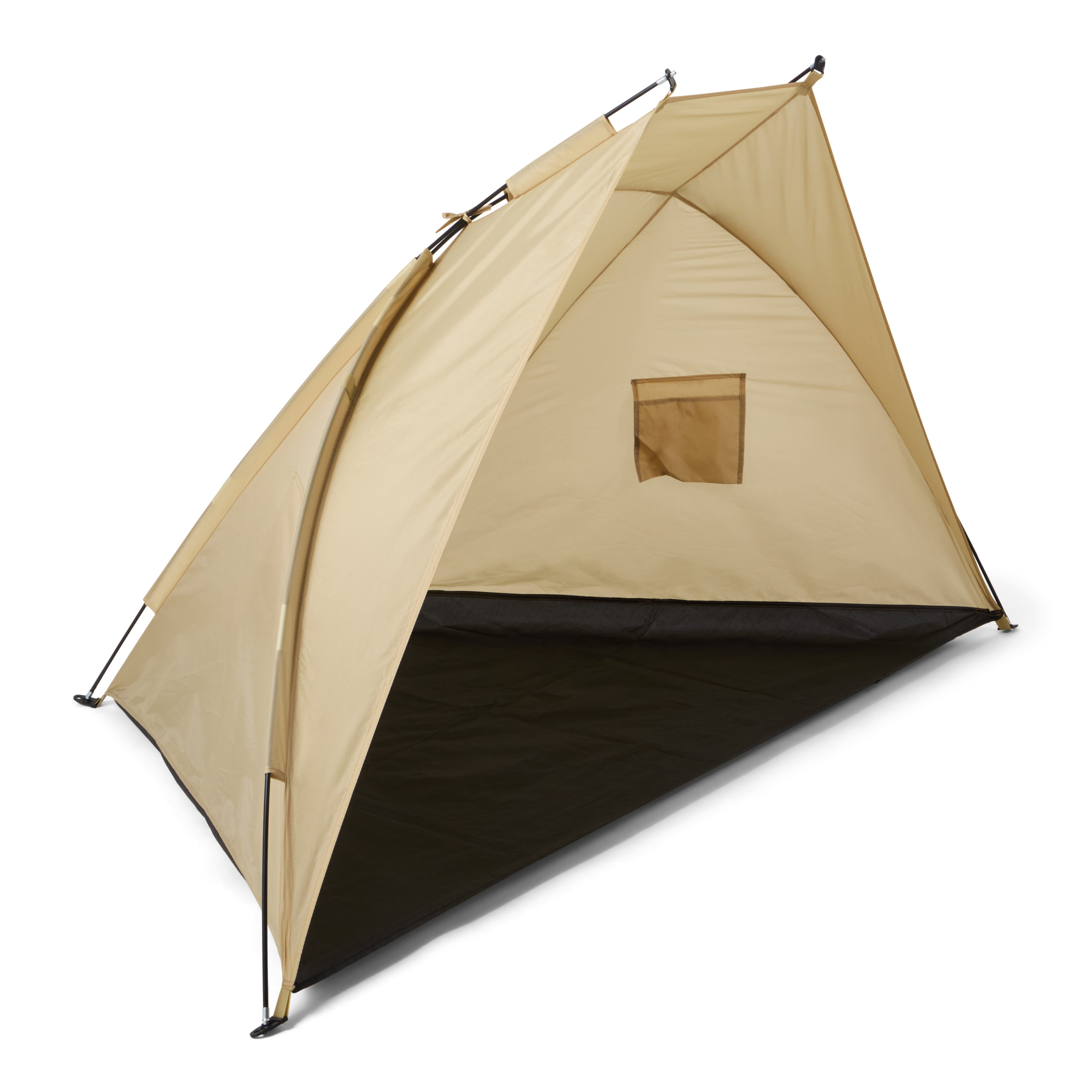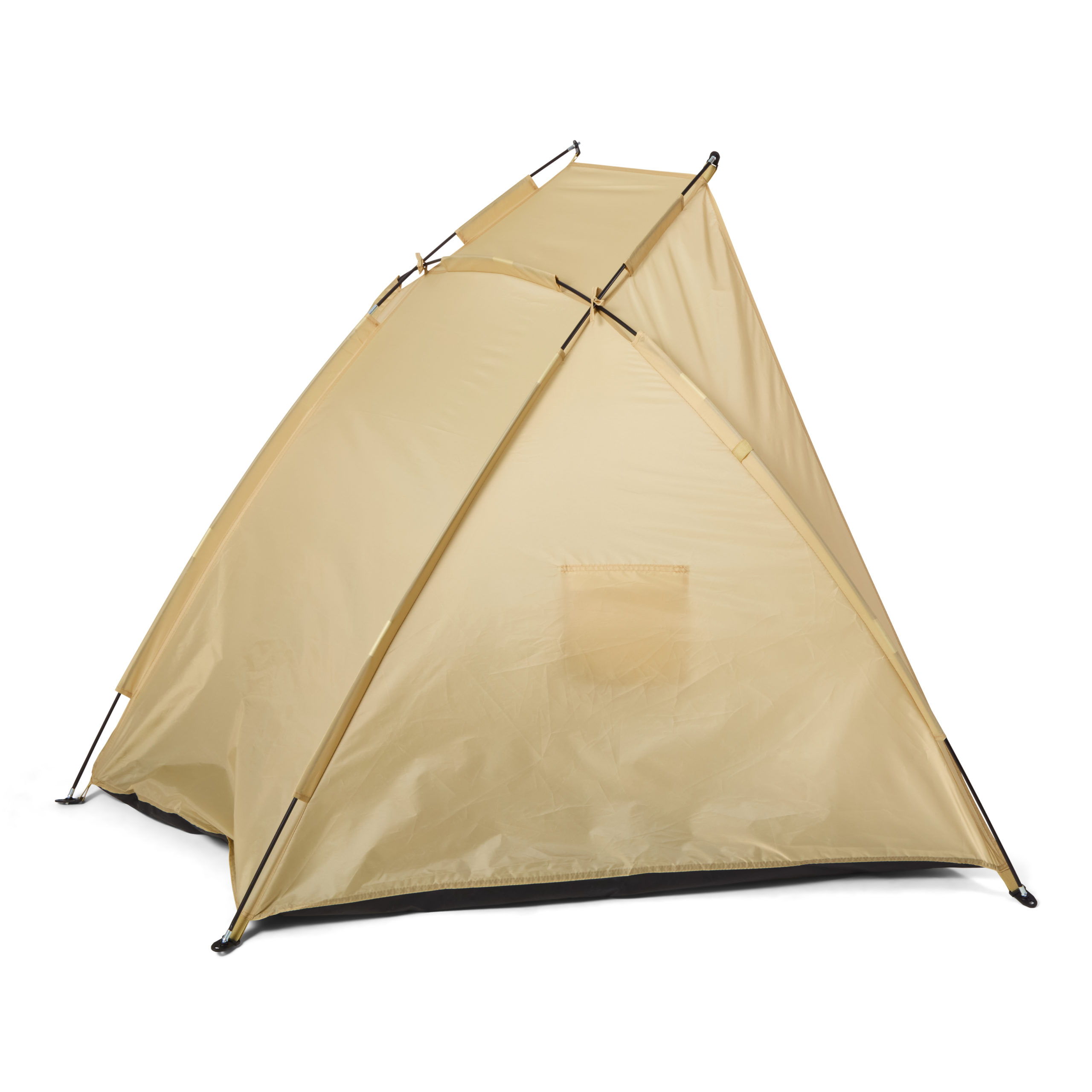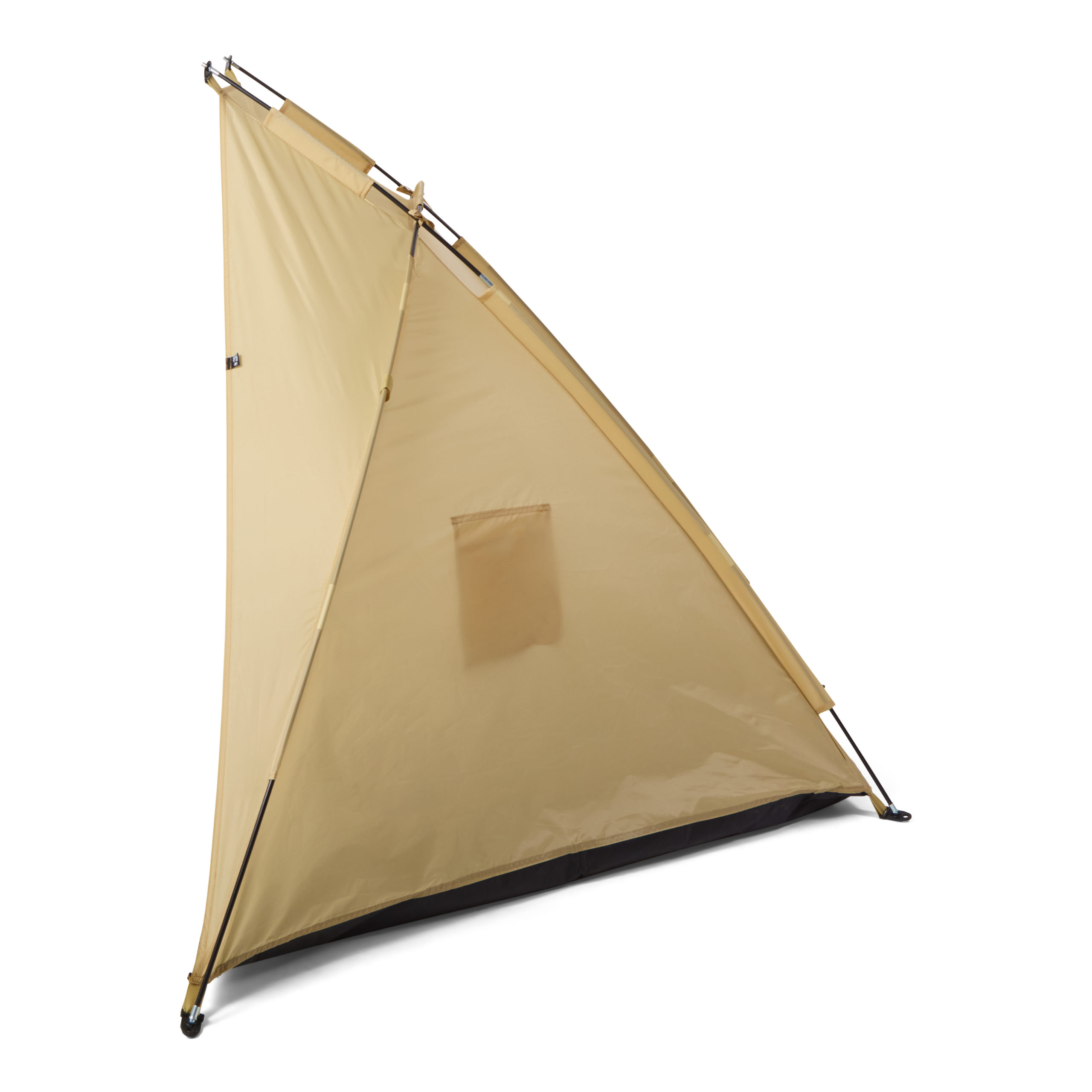 Dette strandteltet er litt større og rommer en voksen samt barn og gir en UV beskyttelse på UPF 50+. Strandteltet monteres raskt og enkelt med medfølgende teltstenger. OBS! Disse kan bøyes, så vær forsiktig når de bøyes ved montering. Strandteltet leveres med en smidig transportveske som har skulderbånd slik at det lett kan slenges opp på skulderen ved transport.